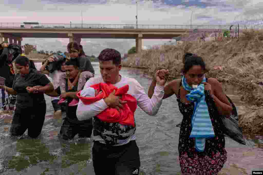 Yusniel, un migrante cubano de 34 años y su esposa Yanara, de 30 años, fueron fotografiados mientras cruzaban la frontera de México y Estados Unidos con su hijo Yireht, de diez días de nacido. Esta familia hizo el cruce fronterizo atravesando el río Grande en Eagle Pass, Texas, el 6 de octubre de 2023.