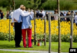 Los asistentes llevaban girasoles para recordar a las víctimas. Sobre un campo ucraniano de girasoles cayeron aquel 17 de julio, los restos de la nave y de las victimas del disparo. Entre los árboles con los nombres de los asesinados, huertos de girasol.