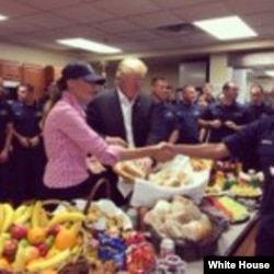 Presidente Donald Trump comparte con bomberos el Día de Acción de Gracias.